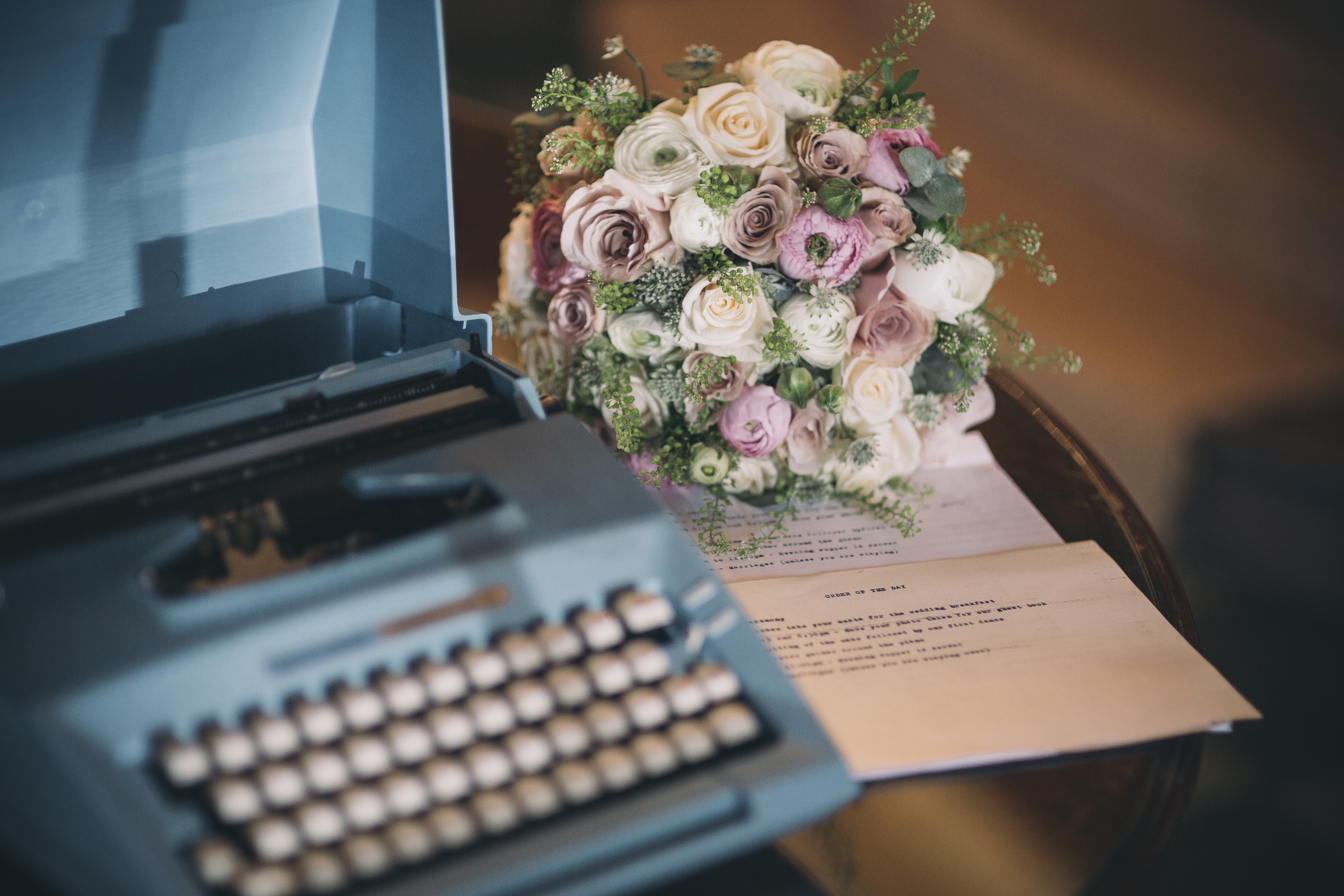 Typewriter and wedding bouquet
